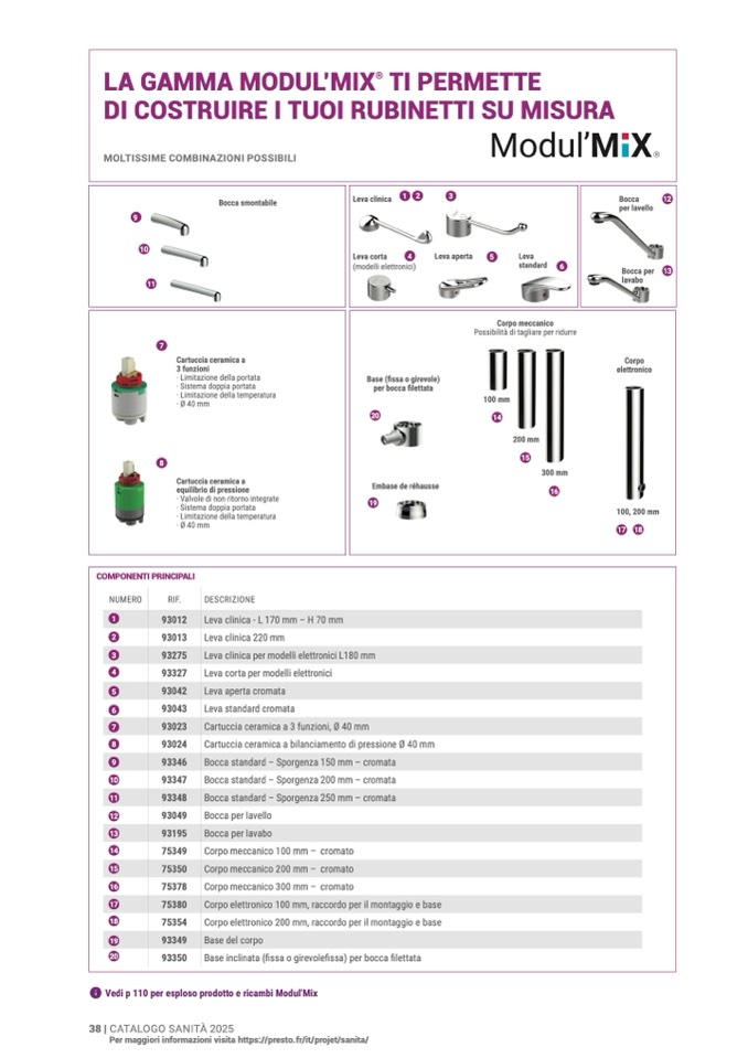 ʢ Vedi p 110 per esploso prodotto e ricambi Modul’Mi