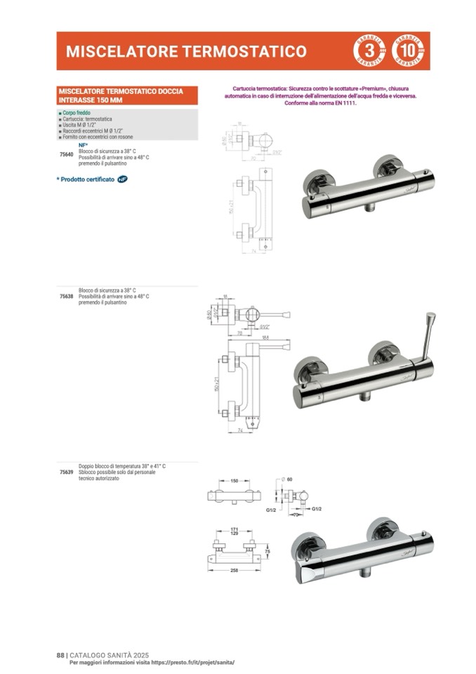 Cartuccia termostatica: Sicurezza contro le scottature «Premium», chiusura