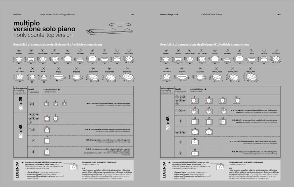 N.B. 16 - 17 - 18: composizioni possibili solo con rubinetto a