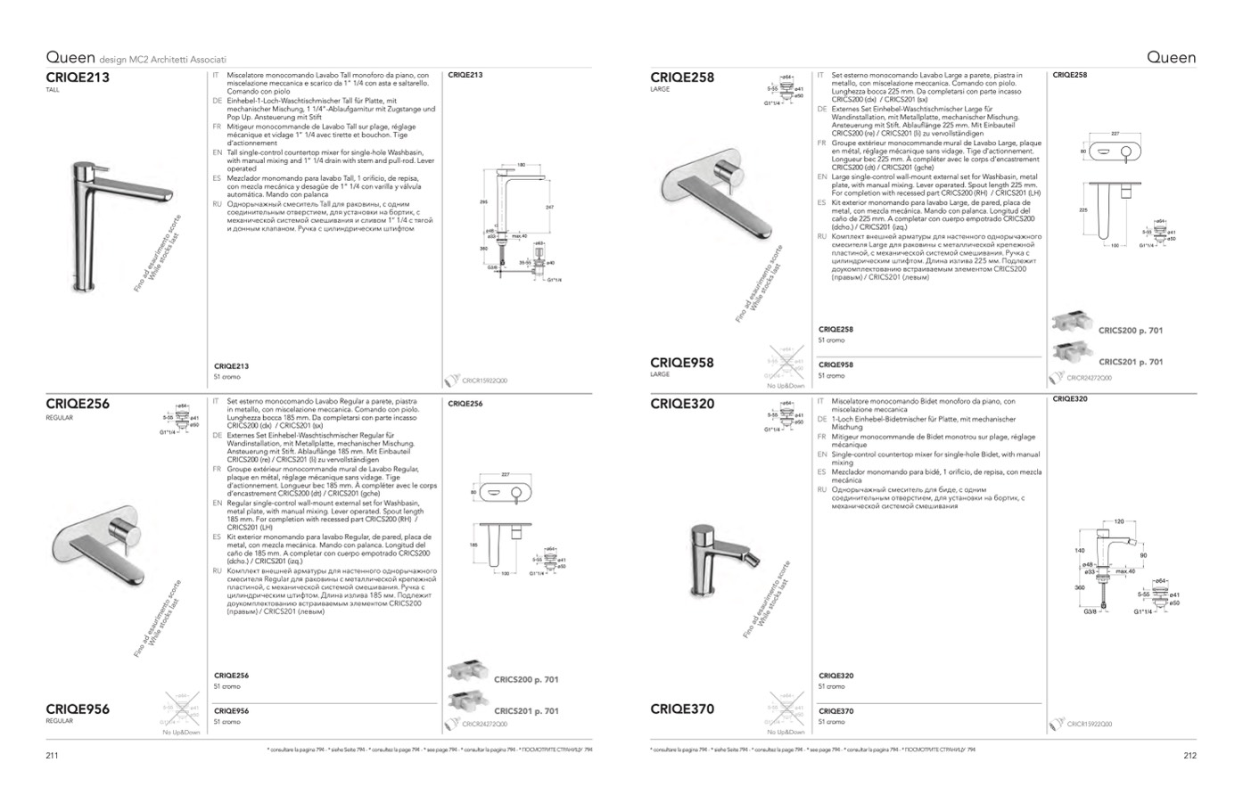 caño de 185 mm. A completar con cuerpo empotrado CRICS200