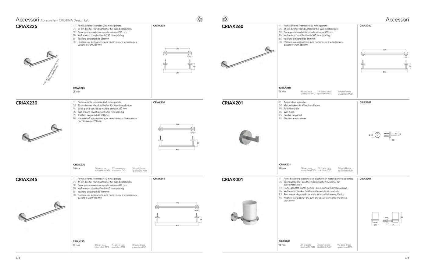 IT Portasalviette interasse 250 mm a parete