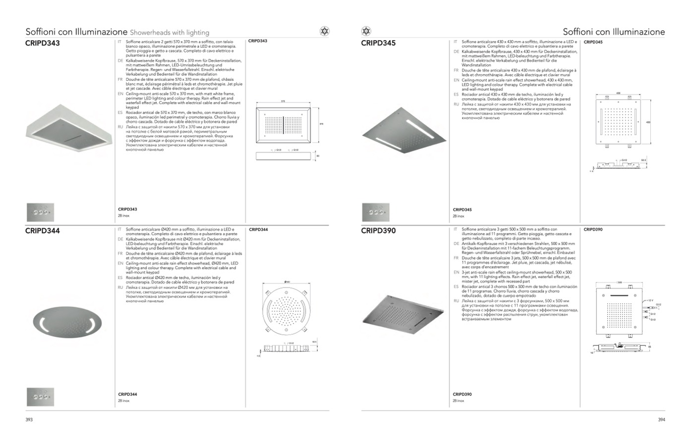 IT Soffione anticalcare 3 getti 500 x 500 mm a soffitto con