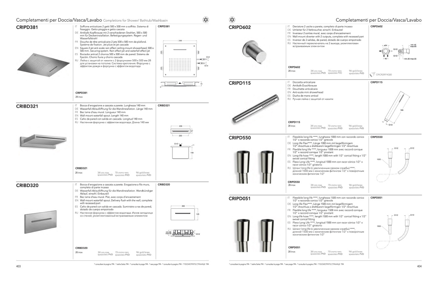 500 mm. Securing system. Rain effect jet and waterfall effect jet