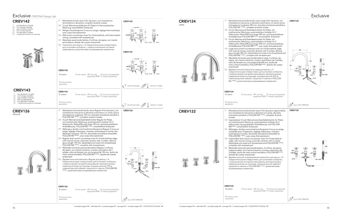 IT Miscelatore bicomando bordo vasca Large 4 fori da piano, con