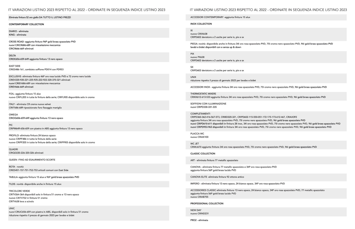 riduzione rispetto il prezzo di gennaio 2023 per lavabo e bidet