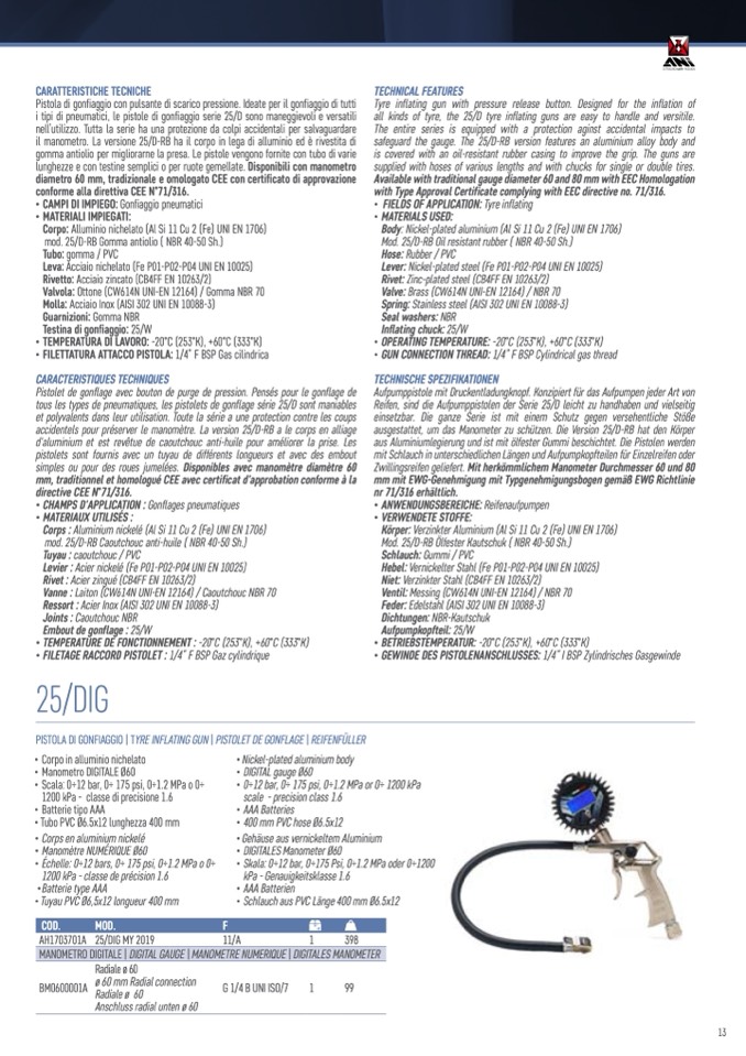 PISTOLA DI GONFIAGGIO | TYRE INFLATING GUN | PISTOLET DE GONFLAGE | REIFENFÜLLER