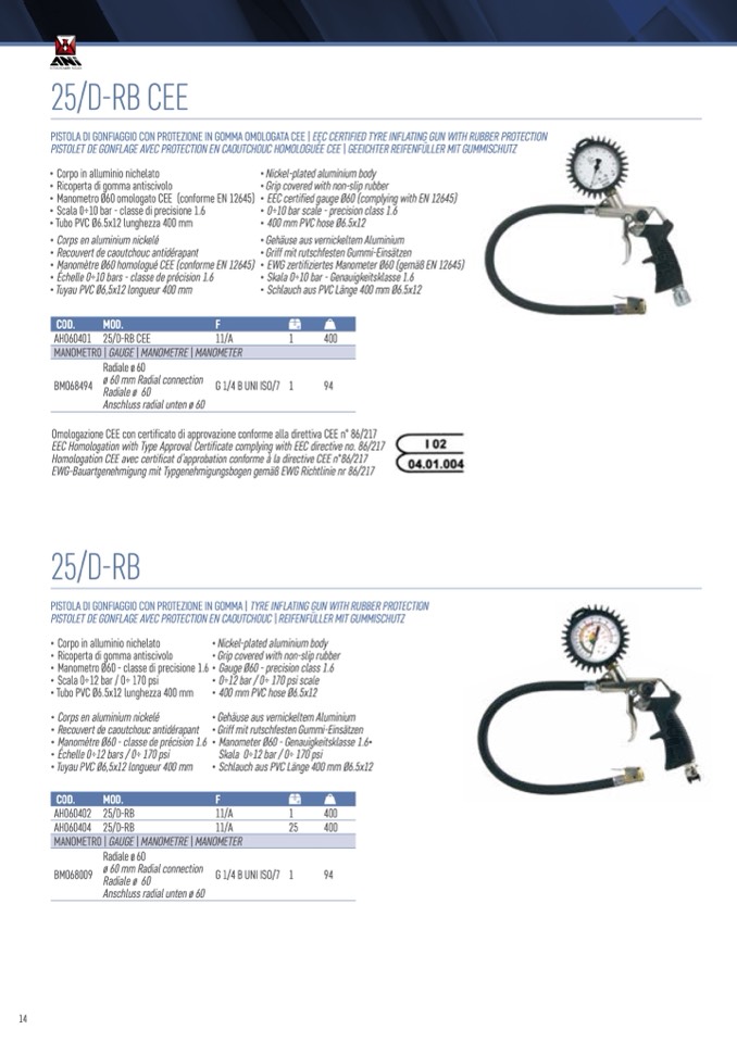 PISTOLA DI GONFIAGGIO CON PROTEZIONE IN GOMMA OMOLOGATA CEE | EEC CERTIFIED TYRE INFLATING GUN WITH RUBBER PROTECTION