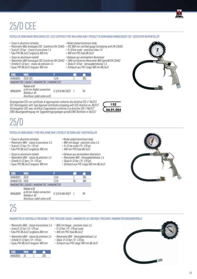 PISTOLA DI GONFIAGGIO OMOLOGATA CEE | EEC CERTIFIED TYRE INFLATING GUN | PISTOLET DI GONFIAGGIO HOMOLOGU