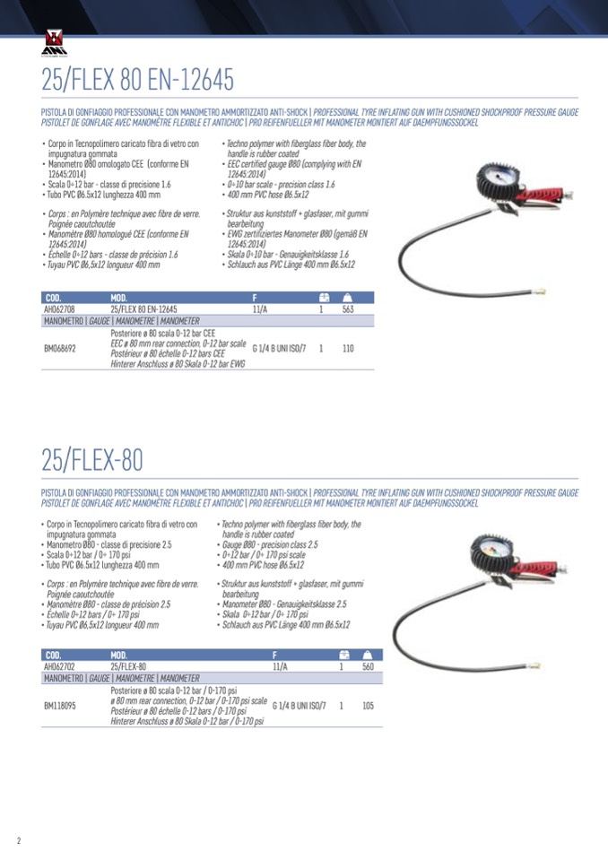 PISTOLA DI GONFIAGGIO PROFESSIONALE CON MANOMETRO AMMORTIZZATO ANTI-SHOCK | PROFESSIONAL TYRE INFLATING GUN WITH CUSHIONED SHOCKPROOF PRESSURE GAUGE