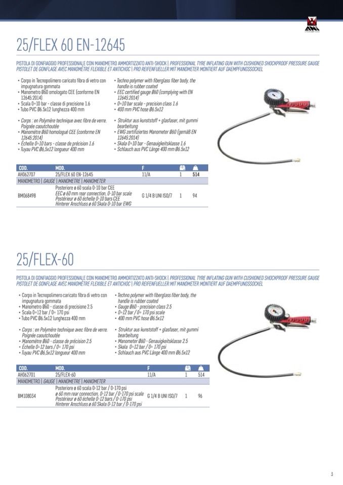 PISTOLA DI GONFIAGGIO PROFESSIONALE CON MANOMETRO AMMORTIZZATO ANTI-SHOCK | PROFESSIONAL TYRE INFLATING GUN WITH CUSHIONED SHOCKPROOF PRESSURE GAUGE