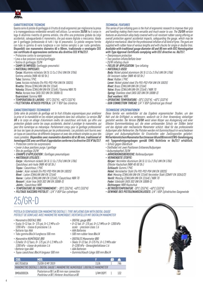• CAMPI DI IMPIEGO: Gonfiaggio pneumatici