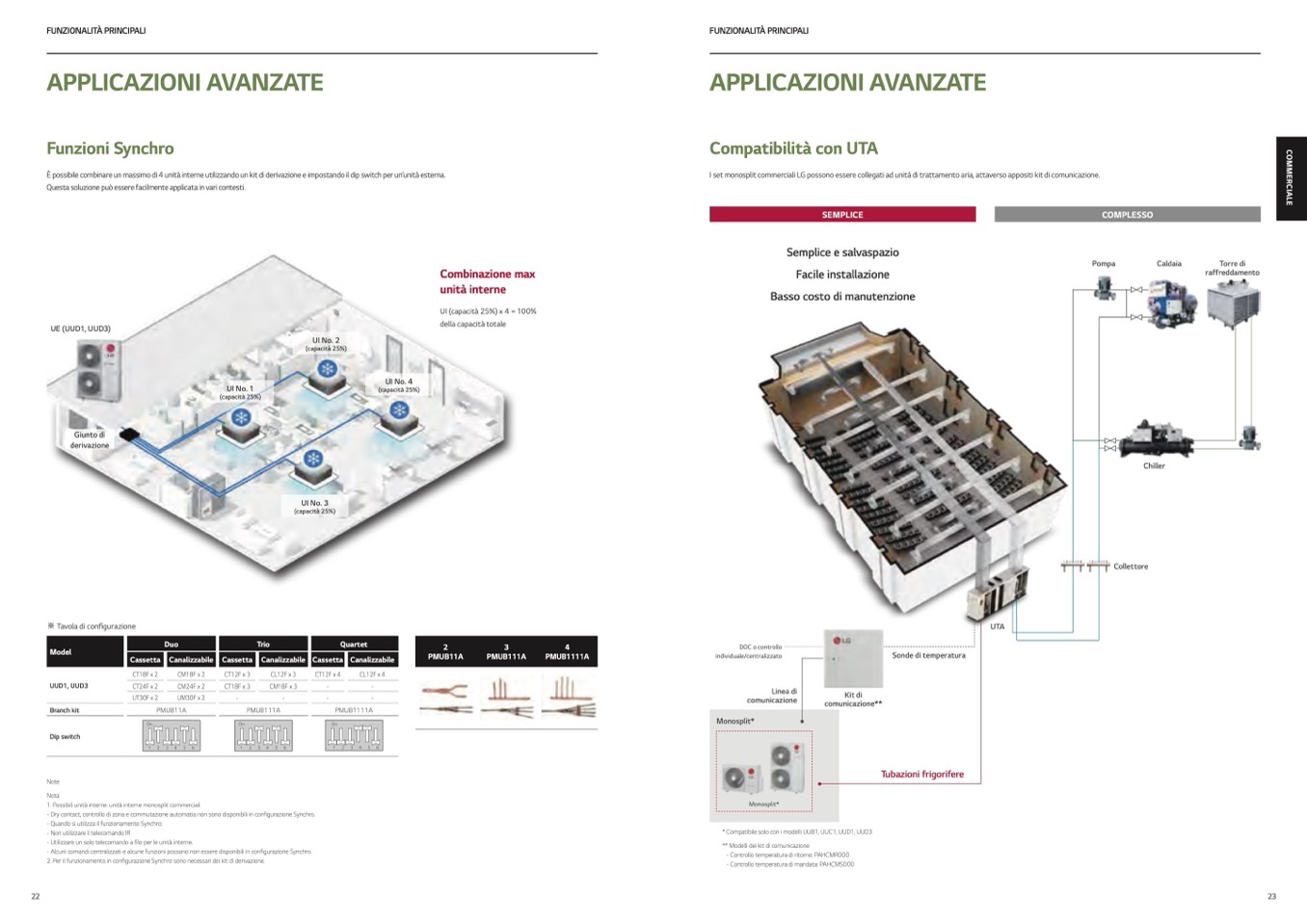 I set monosplit commerciali LG possono essere collegati ad unitá di trattamento aria, attaverso appositi kit di comunicazione.
