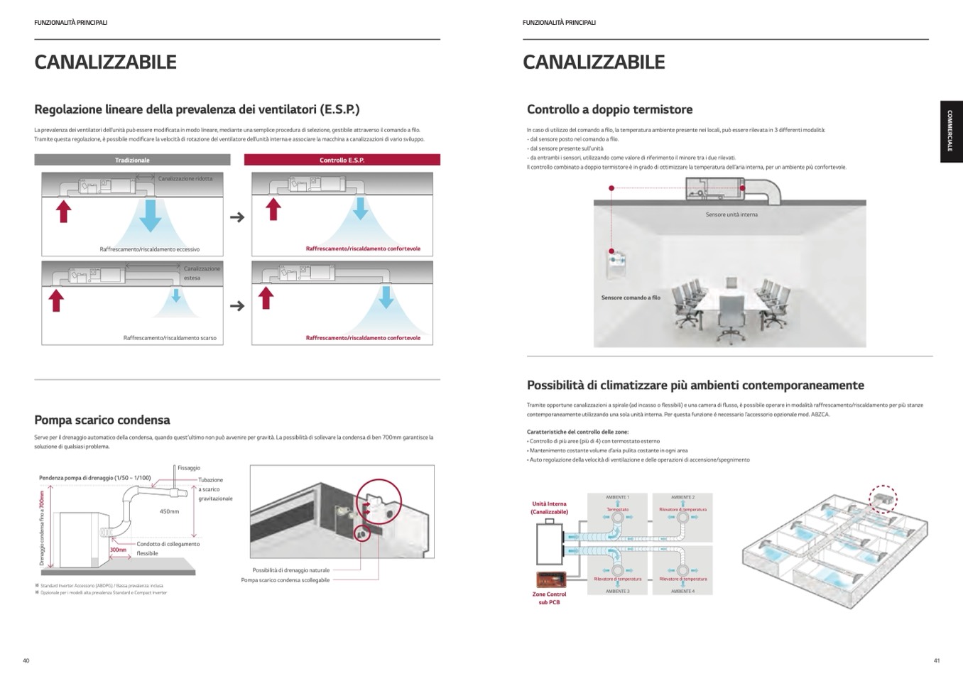 La prevalenza dei ventilatori dell’unità può essere modificata in modo lineare, mediante una semplice procedura di selezione, gestibile attraverso il comando a filo.