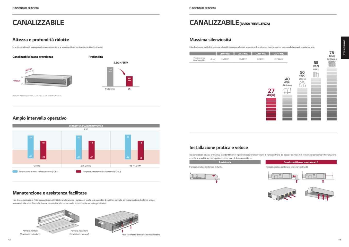 Il livello di rumorosità delle unità canalizzabili bassa prevalenza è stato considerevolmente ridotto, pur incrementando la prevalenza statica utile.