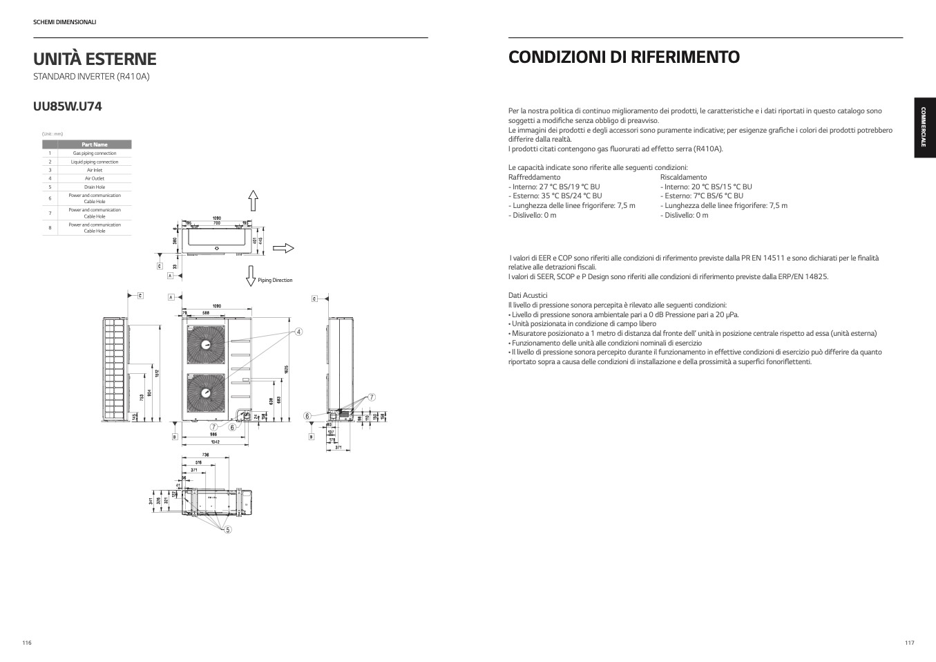• Misuratore posizionato a 1 metro di distanza dal fronte dell’ unità in posizione centrale rispetto ad essa (unità esterna)