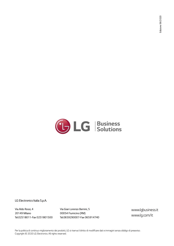Per la politica di continuo miglioramento dei prodotti, LG si riserva il diritto di modificare dati e immagini senza obbligo di preavviso.