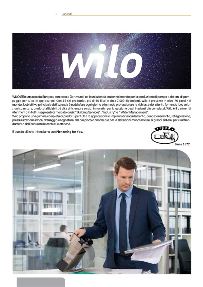 WILO SE è una società Europea, con sede a Dortmund, ed è un‘azienda leader nel mondo per la produzione di pompe e sistemi di pom-