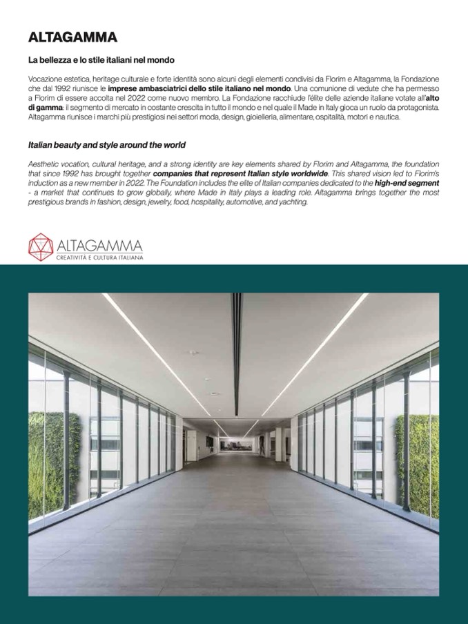 that since 1992 has brought together companies that represent Italian style worldwide. This shared vision led to Florim’s