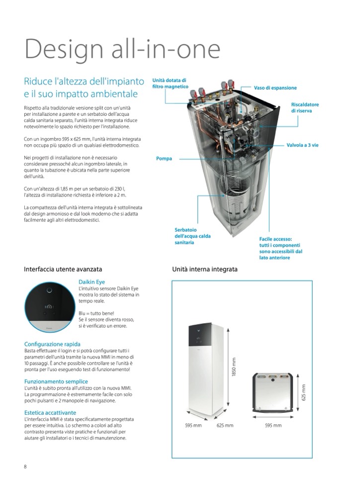 Con un ingombro 595 x 625 mm, l'unità interna integrata