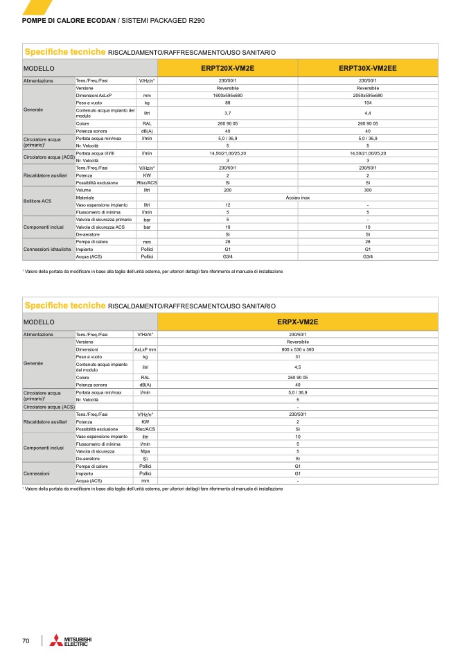 1 Valore della portata da modificare in base alla taglia dell’unità esterna, per ulteriori dettagli fare riferimento al manuale di installazion