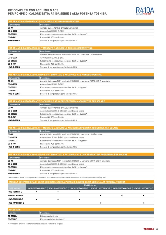TABELLA COMPATIBILITÀ DI ESTIA BOX CON SISTEMI A POMPA DI CALORE ESTIA SERIE 5 ALTA POTENZA TOSHIBA