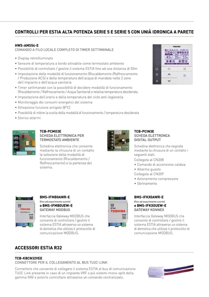 CONTROLLI PER ESTIA ALTA POTENZA SERIE 5 E SERIE 5 CON UNIÀ IDRONICA A PARETE