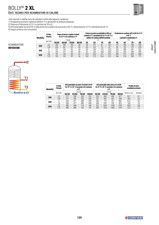 fra 10 °C e 45 °C accumulo a t2 e primario
