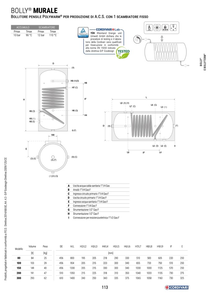 E Ingresso acqua sanitaria 1”1/4 Gas F