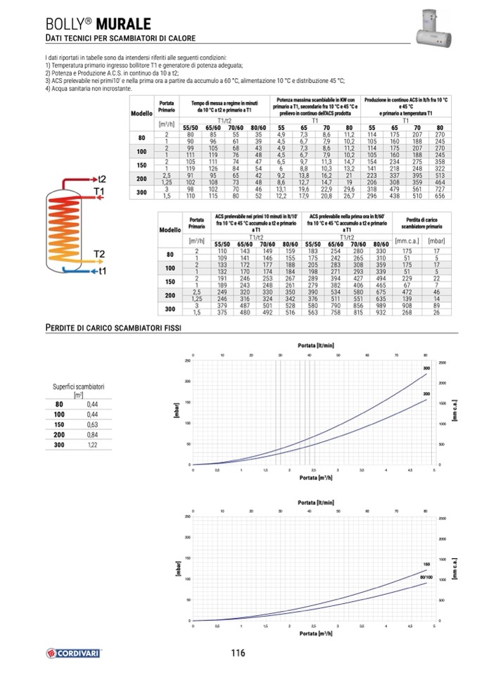 3) ACS prelevabile nei primi10’ e nella prima ora a partire da accumulo a 60 °C, alimentazione 10 °C e distribuzione 45 °C;