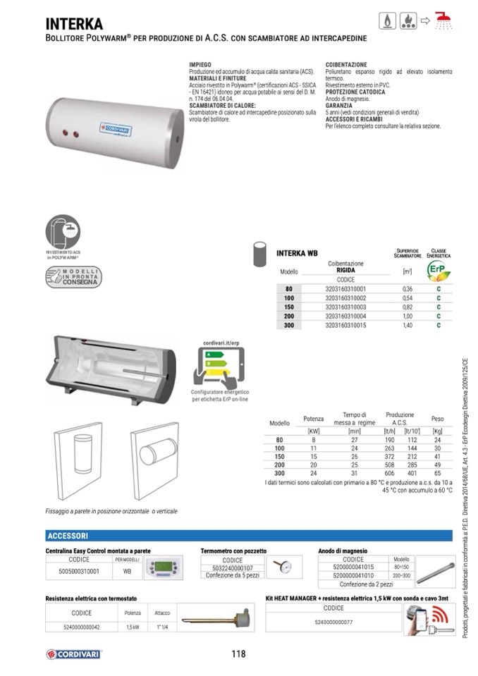 I dati termici sono calcolati con primario a 80 °C e produzione a.c.s. da 10 a
