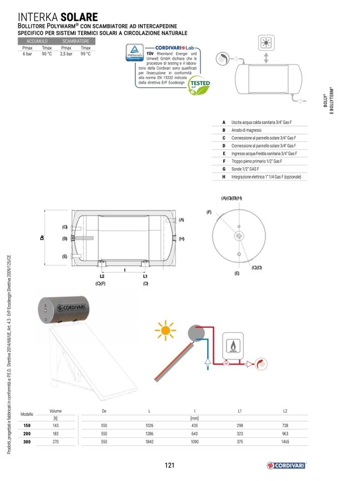 C Connessione al pannello solare 3/4" Gas F