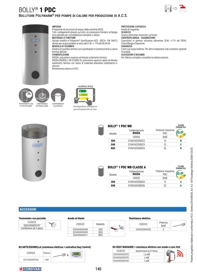 Produzione ed accumulo di acqua calda sanitaria (ACS).