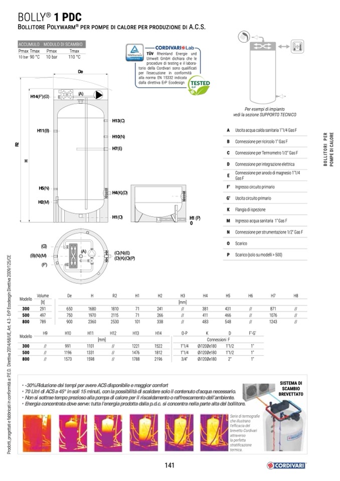 • Energia concentrata dove serve: tutta l’energia prodotta dalla p.d.c. si concentra nella parte alta del bollitore.