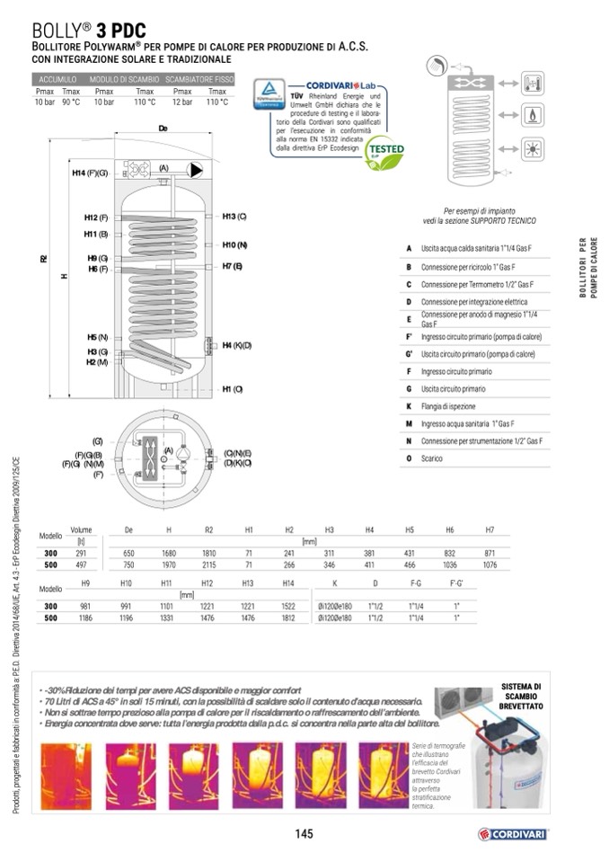 • Energia concentrata dove serve: tutta l’energia prodotta dalla p.d.c. si concentra nella parte alta del bollitore.