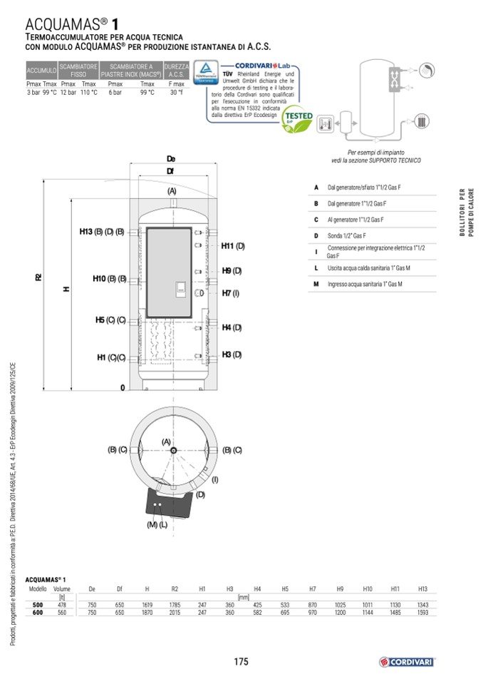 M Ingresso acqua sanitaria 1” Gas M