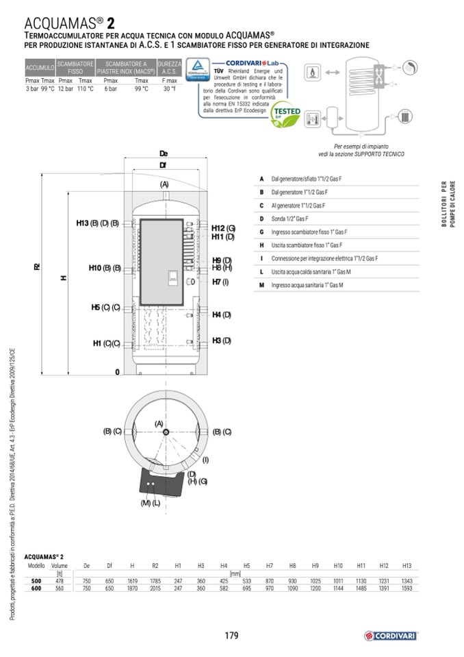Ingresso acqua sanitaria 1” Gas M