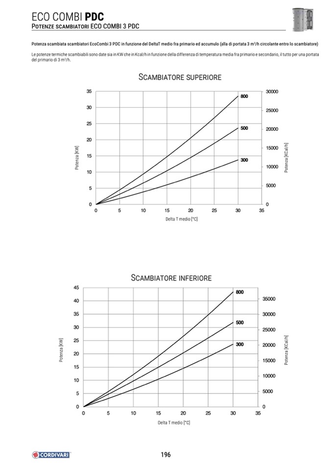 Le potenze termiche scambiabili sono date sia in KW che in Kcal/h in funzione della differenza di temperatura media fra primario e secondario, il tutto per una portata