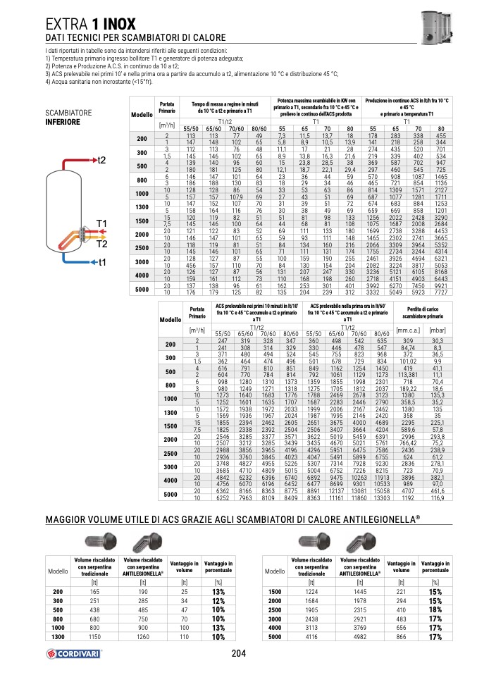 3) ACS prelevabile nei primi 10’ e nella prima ora a partire da accumulo a t2, alimentazione 10 °C e distribuzione 45 °C;