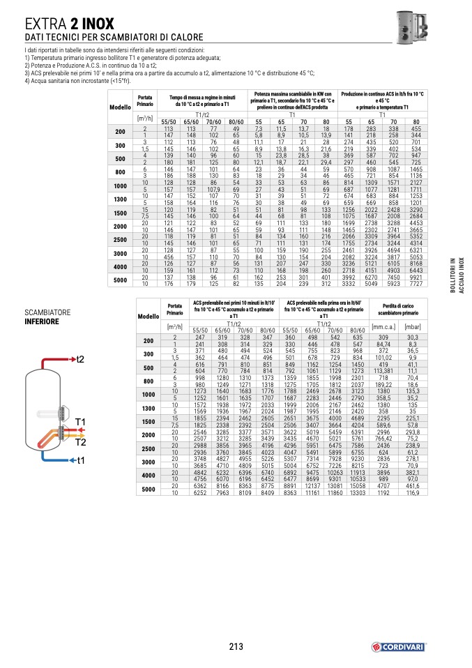 fra 10 °C e 45 °C accumulo a t2 e primario