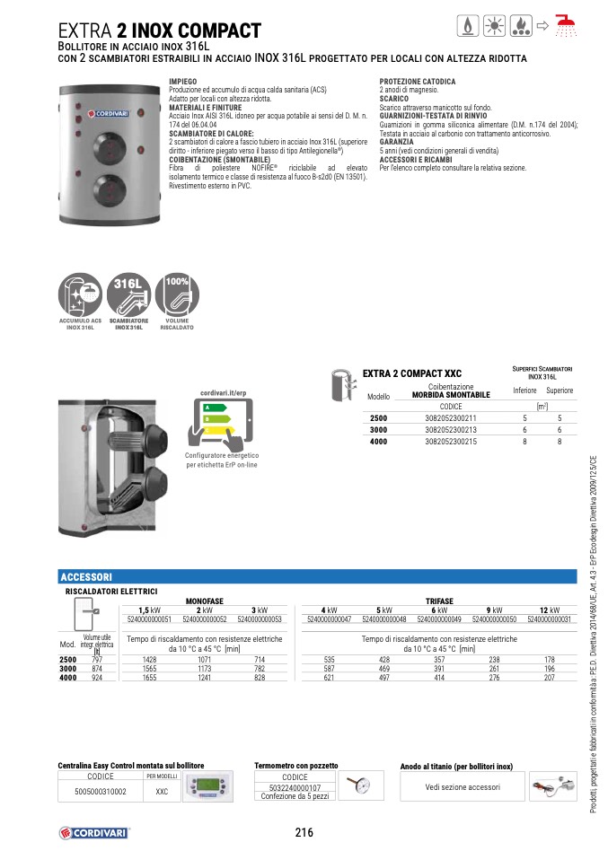 2 scambiatori di calore a fascio tubiero in acciaio Inox 316L (superiore