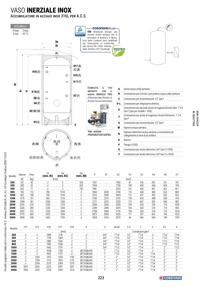B Connessione per ricircolo o per prelievo acqua calda sanitaria