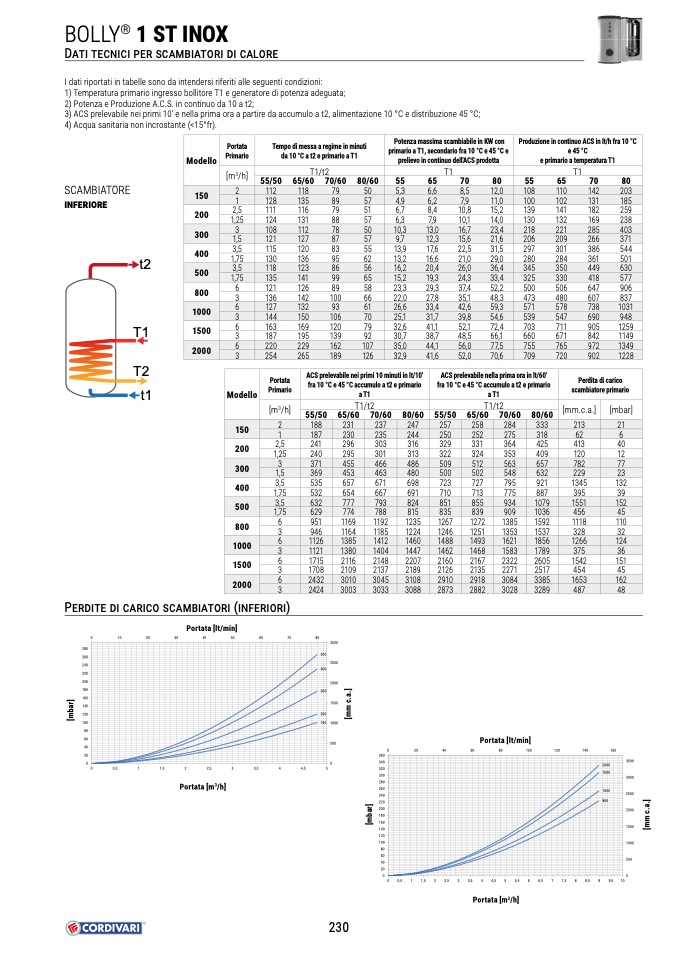 3) ACS prelevabile nei primi 10’ e nella prima ora a partire da accumulo a t2, alimentazione 10 °C e distribuzione 45 °C;