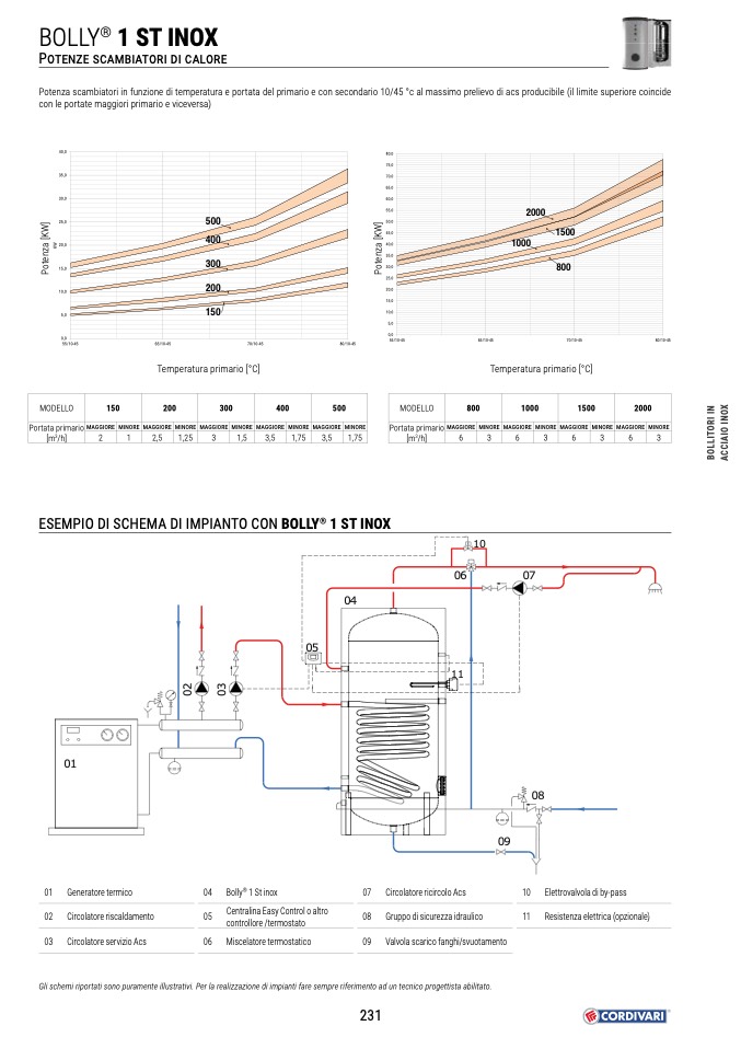Potenza scambiatori in funzione di temperatura e portata del primario e con secondario 10/45 °c al massimo prelievo di acs producibile (il limite superiore coincide