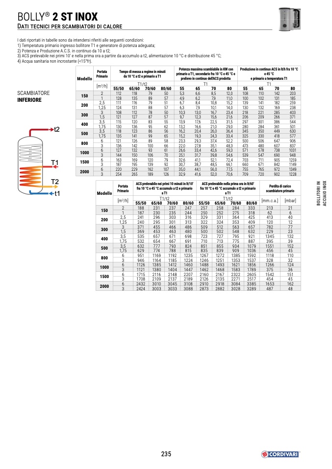 3) ACS prelevabile nei primi 10’ e nella prima ora a partire da accumulo a t2, alimentazione 10 °C e distribuzione 45 °C;