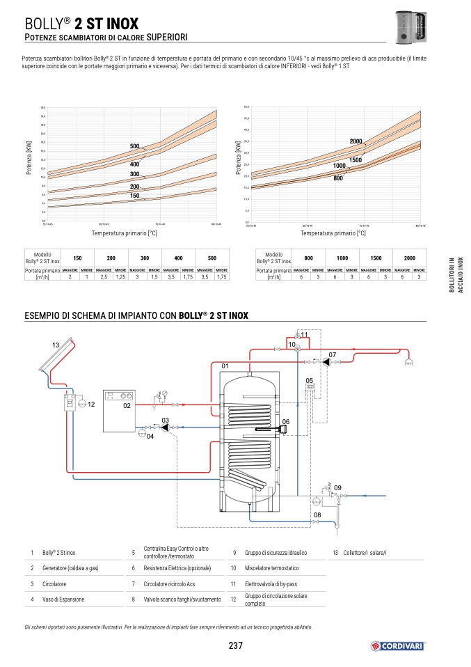 superiore coincide con le portate maggiori primario e viceversa). Per i dati termici di scambiatori di calore INFERIORI - vedi Bolly
