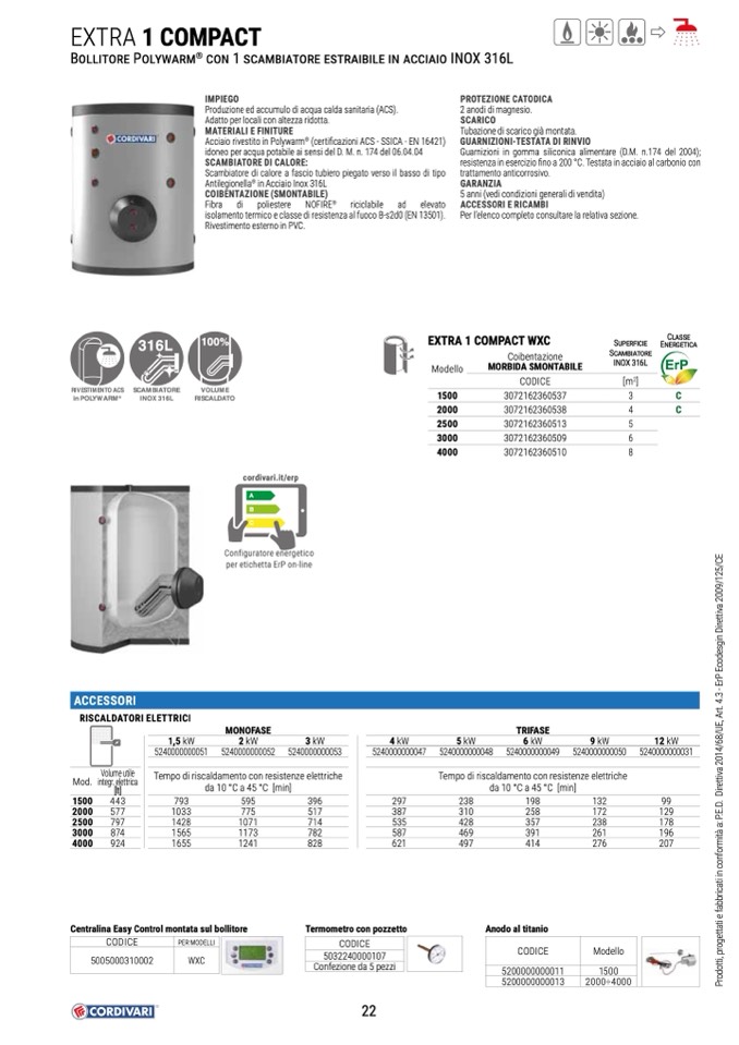 Produzione ed accumulo di acqua calda sanitaria (ACS).