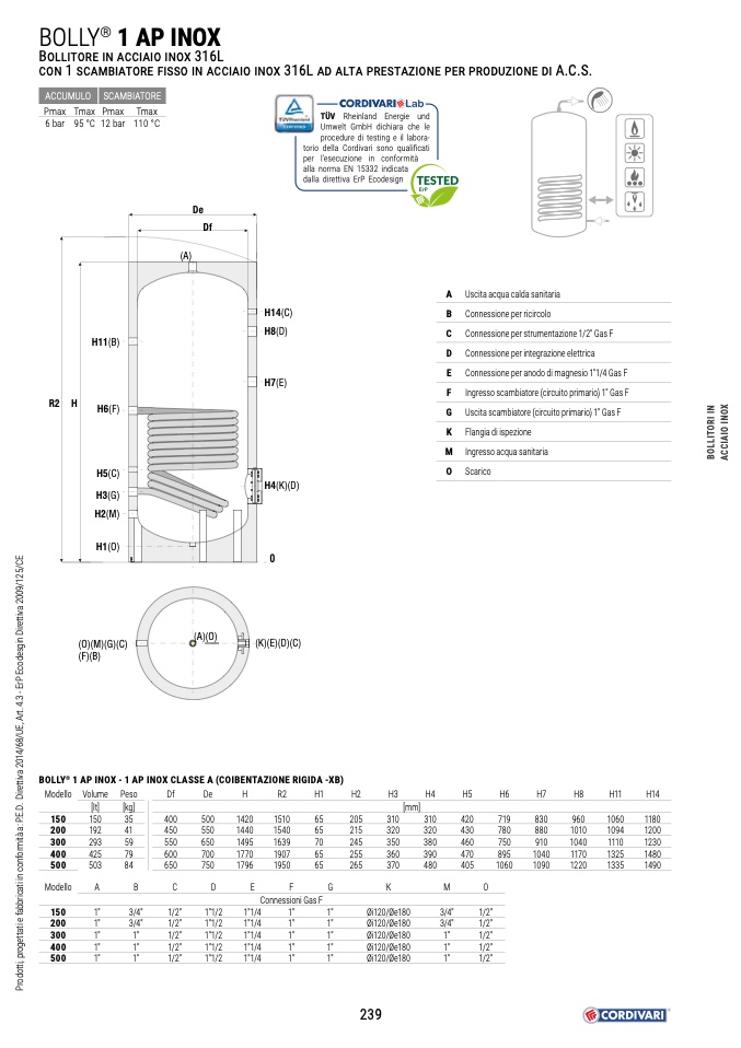 1 AP INOX - 1 AP INOX CLASSE A (COIBENTAZIONE RIGIDA -XB)