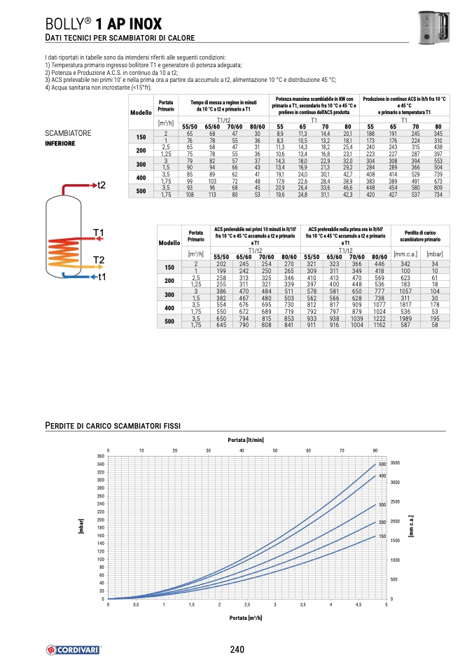 3) ACS prelevabile nei primi 10’ e nella prima ora a partire da accumulo a t2, alimentazione 10 °C e distribuzione 45 °C;