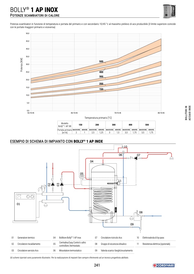 Potenza scambiatori in funzione di temperatura e portata del primario e con secondario 10/45 °c al massimo prelievo di acs producibile (il limite superiore coincide