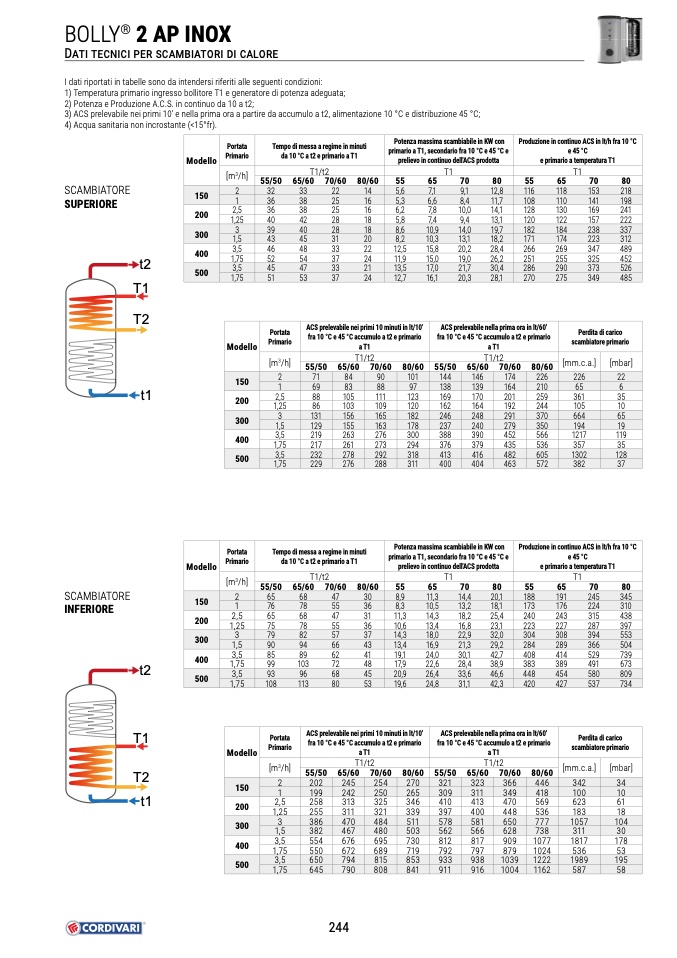 3) ACS prelevabile nei primi 10’ e nella prima ora a partire da accumulo a t2, alimentazione 10 °C e distribuzione 45 °C;
